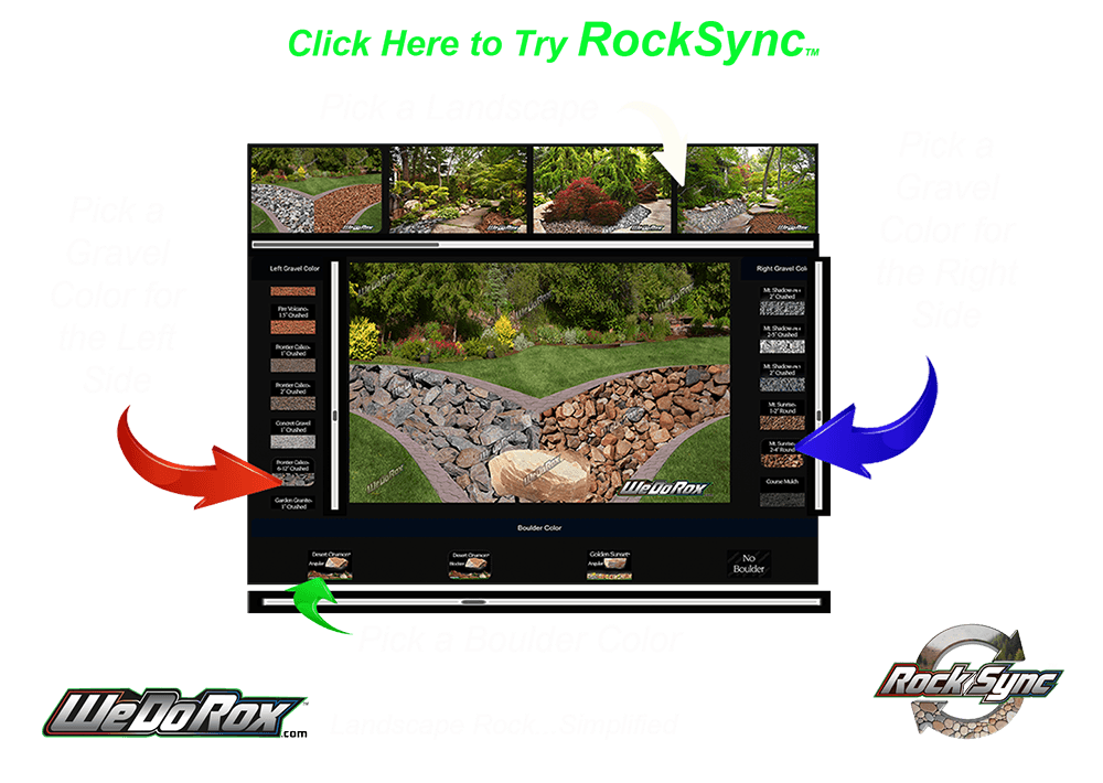 We are excited to present our new RockSync™ page to help you decide which rock colors go best for your landscape. We have also added a line of premium topsoils to our products. And just to make it interesting, you will see options to try in your landscape that we don’t even sell. But we want you to be able to try (Mulches, grass and more). Give it a try and see what works for your landscape!